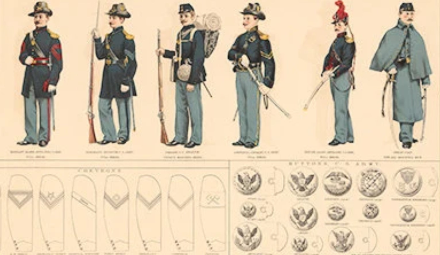 RE: die verrückten Spielewelten/ USA- Union/ Georgia - FreiErfunden - 28.01.2024 (28.01.2024, 09:10)Matthias schrieb: MarquisDer Hauptmann ist aber ein Oberleutnant Leider habe ich kein schärferes Bild gefunden, wo man überall die Schrift noch lesen kann. So könnte ein Captain aussehen. Aber das ist auch die Paradeuniform. Man beachte die einreihige Knopfleiste (Im Gegensatz zu 2 Reiher Major) Feld Käppi dazu: Das ist demnach dann eher so gornix, ahh doch ein Jägermeister? Aber schick ![]() Eine grüne Uniform? Außerdem waren die entweder blau oder grau... mit blauen Hosen. Die Spitze vom Ärmelstreifen nach oben gab und gibt es auch nicht. Ein einziger Streifen ist und war auch ein E2 Private (heutige Kennzeichnung) Aber auch nicht am Unterarm, sondern Oberarm. 2 goldene Streifen im Bürgerkrieg am Kragen war schon ein "First Lieutnant" vergleichbar mit einem Oberlolly... Aber dann mit goldener Schulterklappen, weil Offizier. 3 goldene Streifen am Kragen würde ein Captain sein... Also der Hauptmann im Vergleich. Heute bei den Offizieren: Das ist in der Army ein First Leutnant und hat einen einzigen Silberstreifen auf der Schulter. Der "Captain" hat davon dann 2 Silberstreifen und ist vergleichbar mit einem Hauptmann. Ich kenne mich da aber nicht aus, habe auch nur Bilder geschaut und nichts was verstanden. https://www.etsy.com/de/listing/261206753/uniformen-der-union-konfoderierten?variation0=3433854340 https://de.wikipedia.org/wiki/Dienstgrade_der_Streitkr%C3%A4fte_der_Vereinigten_Staaten RE: die verrückten Spielewelten/ USA- Union/ Georgia - deskoenigsadmiral - 28.01.2024 (28.01.2024, 11:25)FreiErfunden schrieb:(28.01.2024, 09:10)Matthias schrieb: MarquisDer Hauptmann ist aber ein Oberleutnant Die grünen Uniformen, waren Scharfschützen.... siehe auch "Fackeln im Sturm"da kamen sie auch vor, auch gab es, gerade im Süden viele Milizen und Bürgerwehren, auch kleine Privatarmeen, gestellt von Großgrundbesitzern, wo es sehr viele Fantasie Uniformen gab.... Und ich brauchte einen Hauptmann im Spiel, da werde ich nicht anfangen, eine so schöne Uniform umzugestallten.... ![]() Er hat das Kommando, das muss man sehen und ich denke, das sieht man(n)......