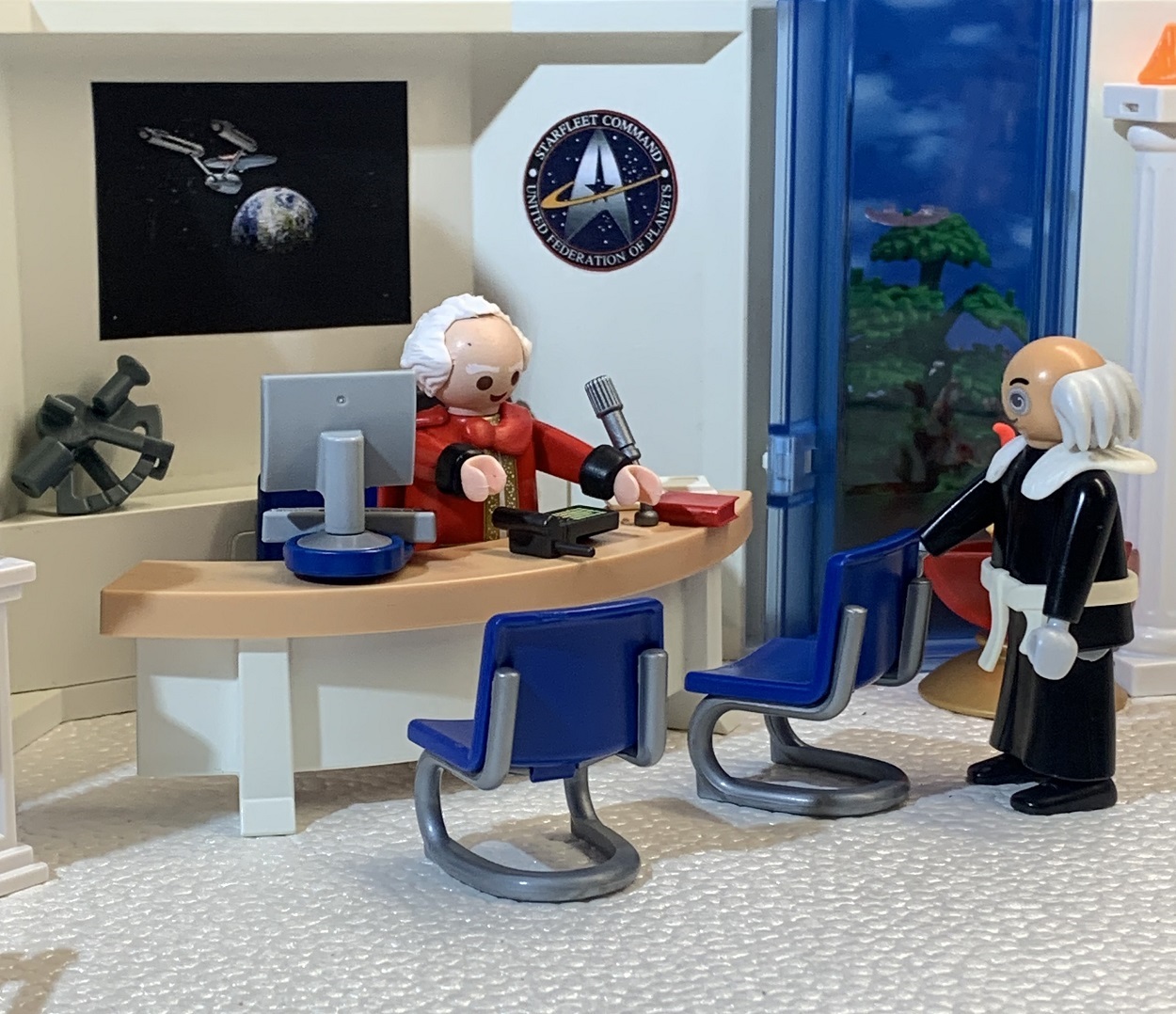 v. links: Präsident der Sternenflotte Charles Vance / Prof. X / Sekräterin des Präsidenten Miss Moneypenny