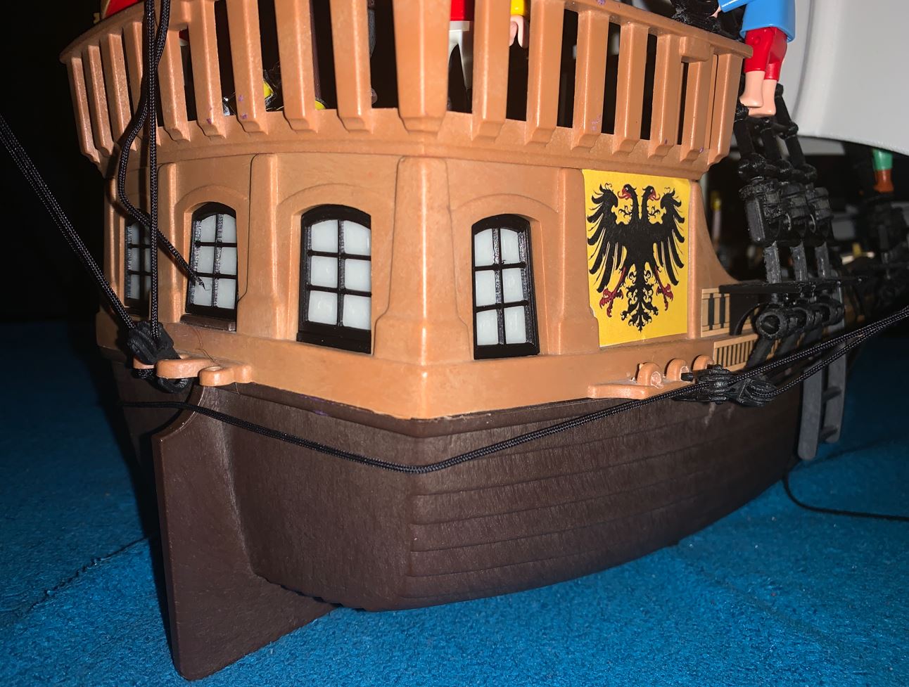 Die originale Takelage von Playmobil ist ja extrem vereinfacht. Würde man aber das gesamte stehende und laufende Gut der Takelage dem Original entsprechend nachbauen, das Schiff wäre jenseits aller Bespielbarkeit. Ich finde, Du hast zwischen diesen beiden Extremen einen hervorragenden Kompromiß gefunden. Das Schiff gefällt mir wirklich gut!