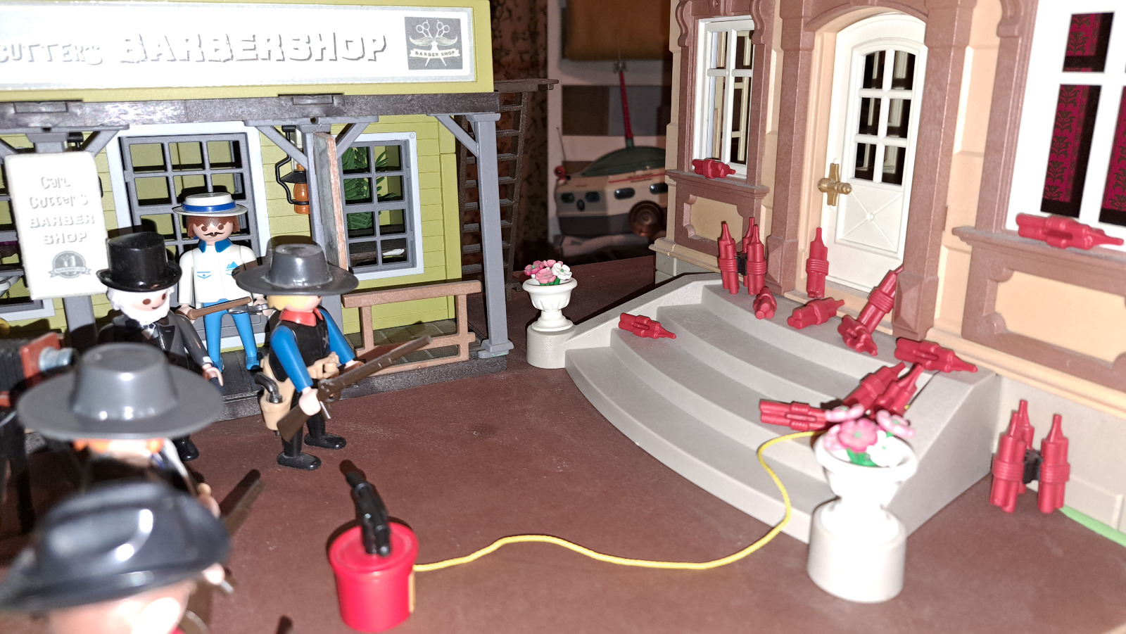 Schnell ist eine klitzekleine Menge Dynamit am Gebäude befestigt.....