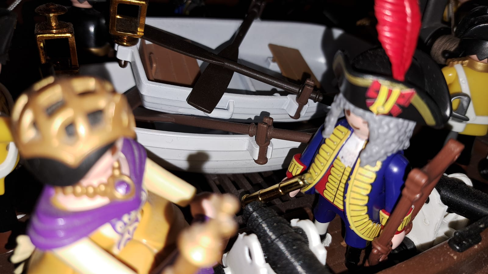 ![]() Männer, da ist sie....... ..... ich sehe sie, oh man, beeindruckend...... so beeindruckend..... Steuermann, gehen sie längseits..... ![]() Und so ging die bescheidene "San Bernado" längseits zur beeindruckenden "Santisima Trinidad", dem Flaggschiff, der Kaiserin Isabel von Spanien..... ![]() So fuhren sie nebeneinander her.... Von dem Flaggschiff der Kaiserin, kam das Signal, das der Generalleutnant an Bord kommen soll...... !!! Meine Kaiserin, sie rufen und ich eile...... wie lauten eure bescheidenen Wünsche..... wo soll ich, in eurem Namen dienen.... ![]() Eure Worte entzücken mich, lieber Generalleutnant, ja ich brauche sie, für eine heikle Aufgabe, unser gut unterrichteter Geheimdienst, hat mehrere Gefahren ausgemacht, eine davon sollen sie, lieber Senior Blas de Lezo eliminieren.... !!! Hoheit, geben sie mir Truppen und Schiffe und ich werde gegen jedes Ungeheuer kämpfen, das sie und Spanien bedroht..... bei meiner Ehre..... ![]() Oh, sie werden Truppen und weitere Schiffe bekommen.... jemand versucht Spanien herauszufordern und Spanien wird sich das nicht gefallen lassen.... bei meiner EHRE....!!! Majestät und wenn ich gegen den Teufel persönlich kämpfen muss, so werde ich in die Hölle runtersteigen und mich dem Fegefeuer entgegen stellen, alles für meine Kaiserin, alles für Spanien..... ![]() Oh, der Teufel wird es wohl fast sein, da haben wir ja gerade einige gefährliche in der Welt, kommen sie mit an Land, da wartet Ihre Armee, Spanier und ein lieber Verbündeter, der auch mit Truppen hilft..... diesmal trägt der Teufel das Pech am Schuh, weil er mit uns nicht rechnet.... !!! Und so wartet da, irgendwo in Spanien, an einem geheimen, Geheimort, ganz versteckt, eine klitzekleine Armee auf Ihren Einsatz.... nur, wo wird der sein und welchen Teufel wird es treffen.... Hmmm, wir werden es sehen.....