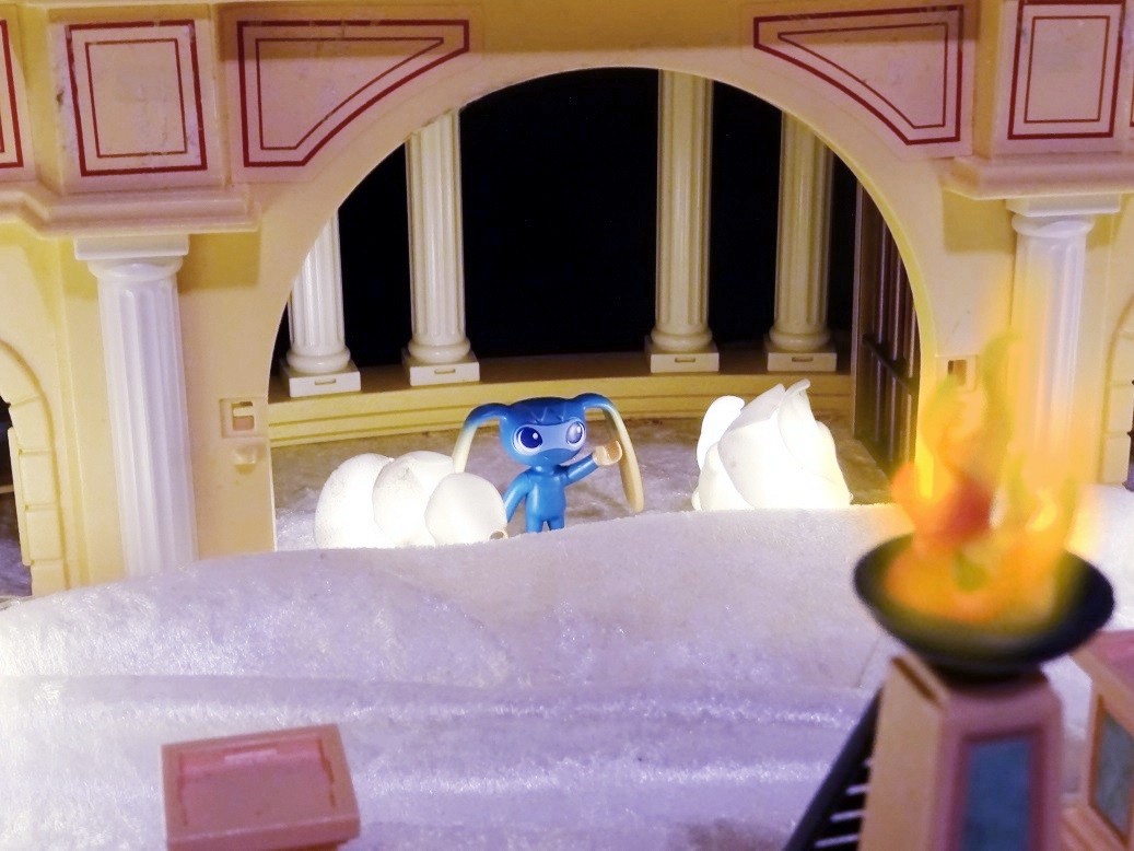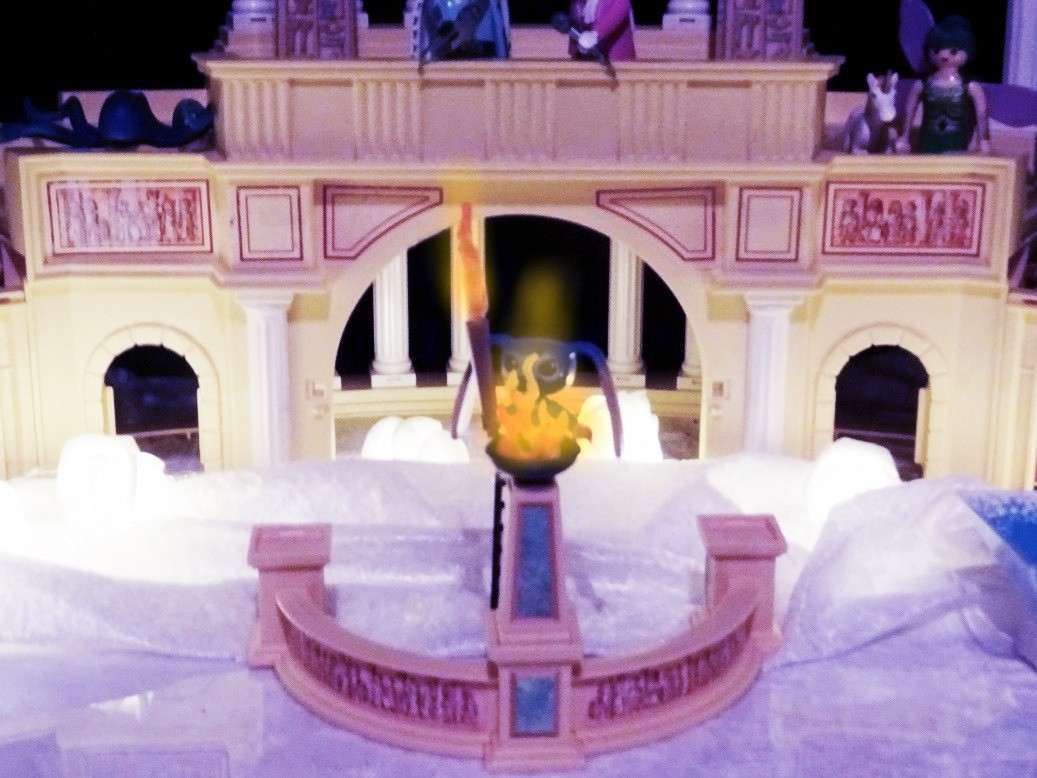 Das olympische Feuer brennt, toll dargestellt mit Kiki.