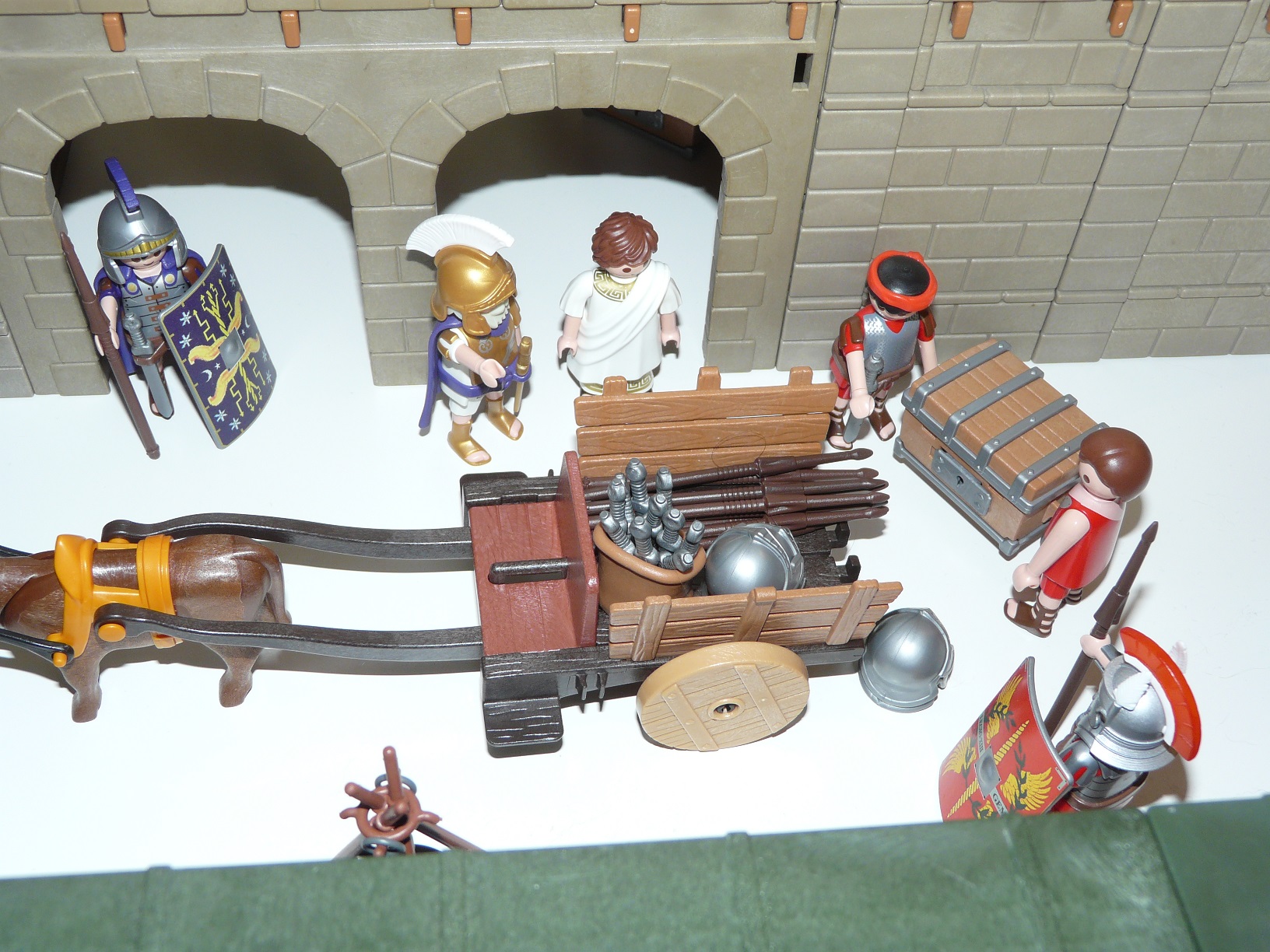 Vor der neu errichteten Principia werden Waffen und Ausrüstung verladen...