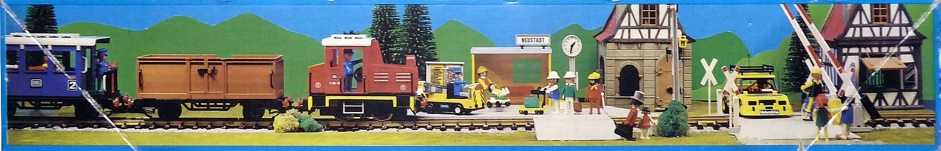 Hier 2 Bilder von den Seiten der Schachtel vom Bahnübergang 4364 (1980). Schon schön, wie viel Zubhör Playmobil zu seiner Eisenbahn anbot Grinsen