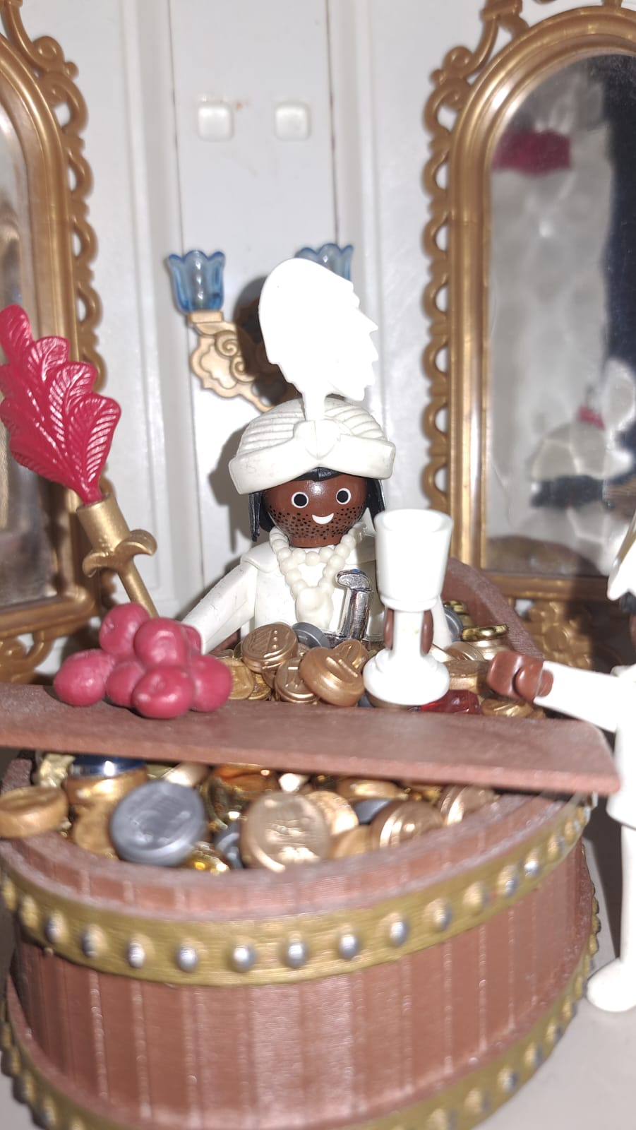 Ja, die sind original weiß - denn ich habe sie aus weißem Filament gedruckt Kicher - nach dieser Vorlage auf Thingiverse link . Ansonsten hast Du recht, die Color-Araber hatten Chromwaffen dabei. Die gedruckten Gewehre sehen auch nicht 100% so aus wie die originalen Araber-Musketen.