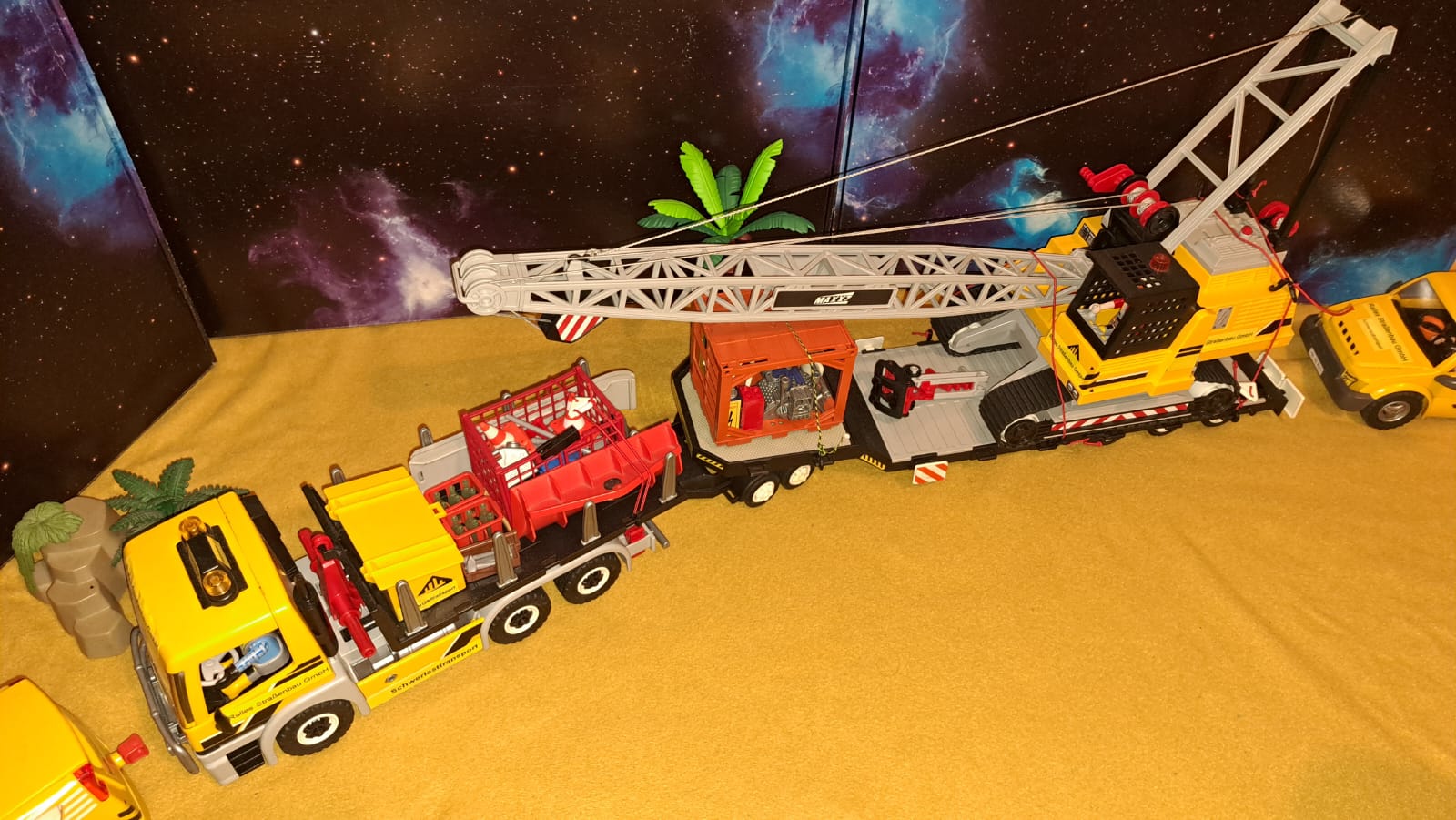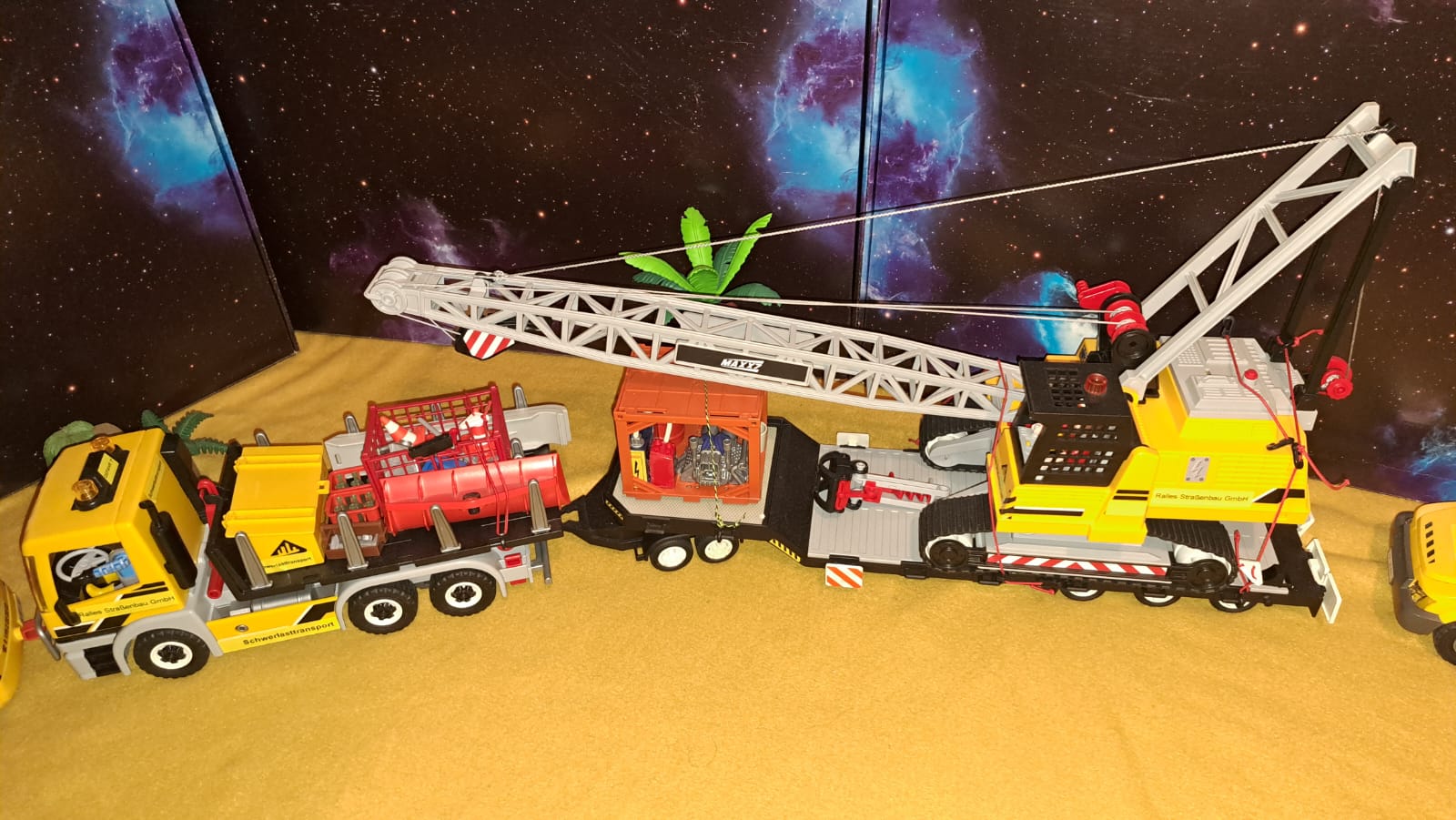 Der große Seilbagger wird von Ralle hauptsächlich zum Be- und Entladen an seinen Baustellen verwendet, auch weil er im Gelände gut agieren kann, wegen der Länge, wird das Zuggespann von zwei Begleitfahrzeugen begleitet...... Cool