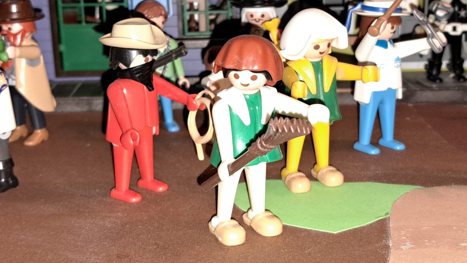 Bleibt stehen.... eine von euch muss die Spionin sein.... Ihr bekommt auch eine neue Frisur, damit ihr am Galgen gut ausseht.... ich will die Belohnung...... dann kann ich mir endlich Spiegel im Laden leisten..... !!!