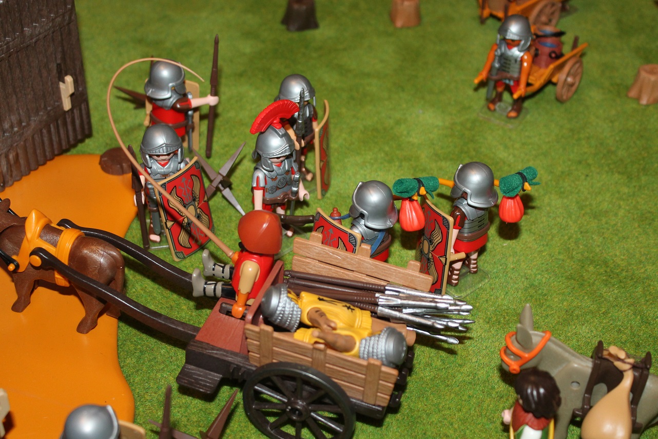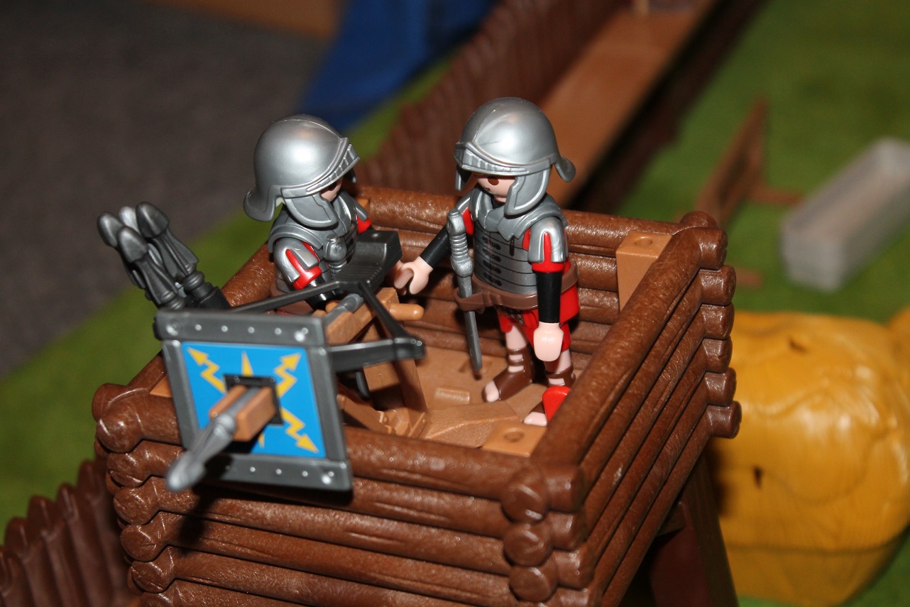 Die Truppen von den Belagerungswaffen haben zwei Skorpione auf den Beobachtungstürmen errichtet.