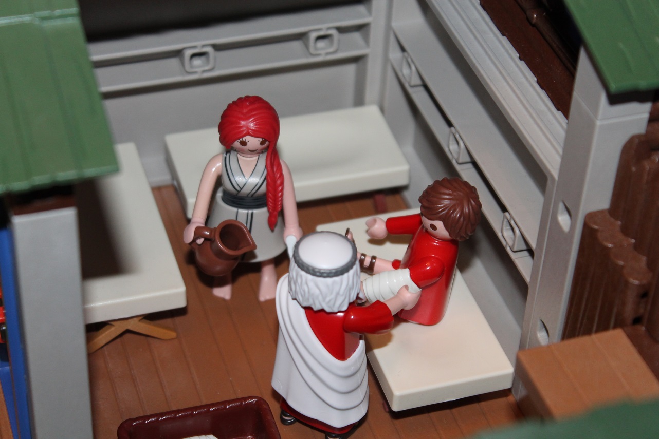 Ein Legionär hat sich bei den Arbeiten verletzt und wird auf der Krankenstation verarztet.