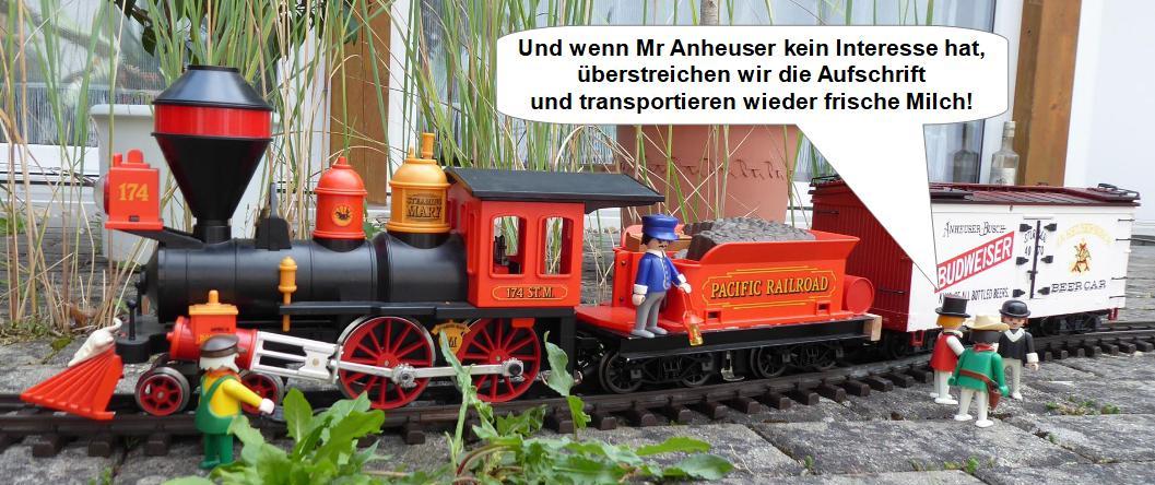 wir sind ein junges, aufstrebendes Eisenbahnunternehmen, das in der Republik Westflorida ansässig ist. Wir sehen uns in der Lage, das von Ihnen gebraute Bier gut gekühlt, rasch, pünktlich und zuverlässig an nahezu jeden Bahnhof in den USA und in der Republik Westflorida zu liefern.
