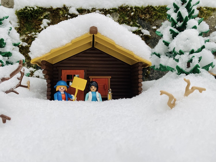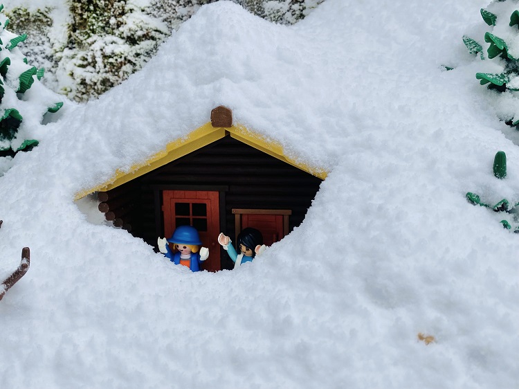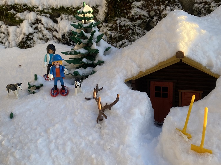 Umso überraschter waren sie am nächsten Morgen, als sie vor die Türe traten. Die weiße Pracht lag mindestens einen Meter hoch und es war eiskalt. Sie überlegten, ob sie überhaupt Schnee schieben sollten. Aber vorerst hatten sie keine Lust und beschlossen einen gemütlichen Tag im Haus zu verbringen.