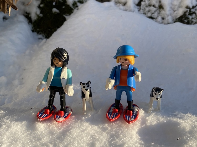 Der nächste Morgen belohnte sie mit einem herrlichen Wintertag. Sie hatten in der Hütte Schneeschuhe gefunden, nahmen die Gelegenheit wahr und machten damit nach dem Mittag eine kleine Wanderung. Die Hunde, stets mit von der Partie, tollten im pulverigen Schnee herum.