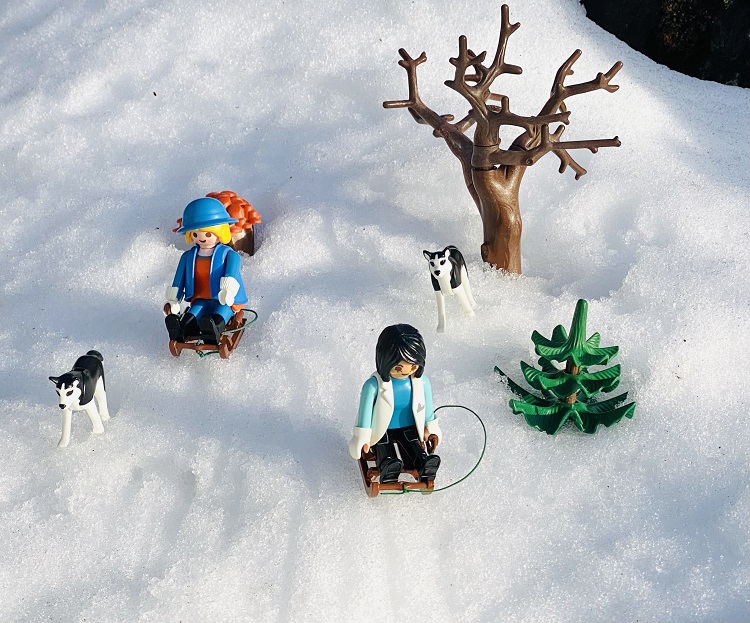 Das Rodeln machte ihnen besonders Spaß. Dafür waren die Bedingungen auch nahezu perfekt. Anuk und Kuna begleiteten sie treu, bald lernten es die beiden die Schlitten bergan zu ziehen. Die Freundinnen mussten ihnen nur folgen, rasten dann den Berg auf den Schlitten hinunter, während die Hunde, manchmal auch purzelbaumschlagend, den Hang hinabjagten um mit den Freundinnen Schritt halten zu können.
