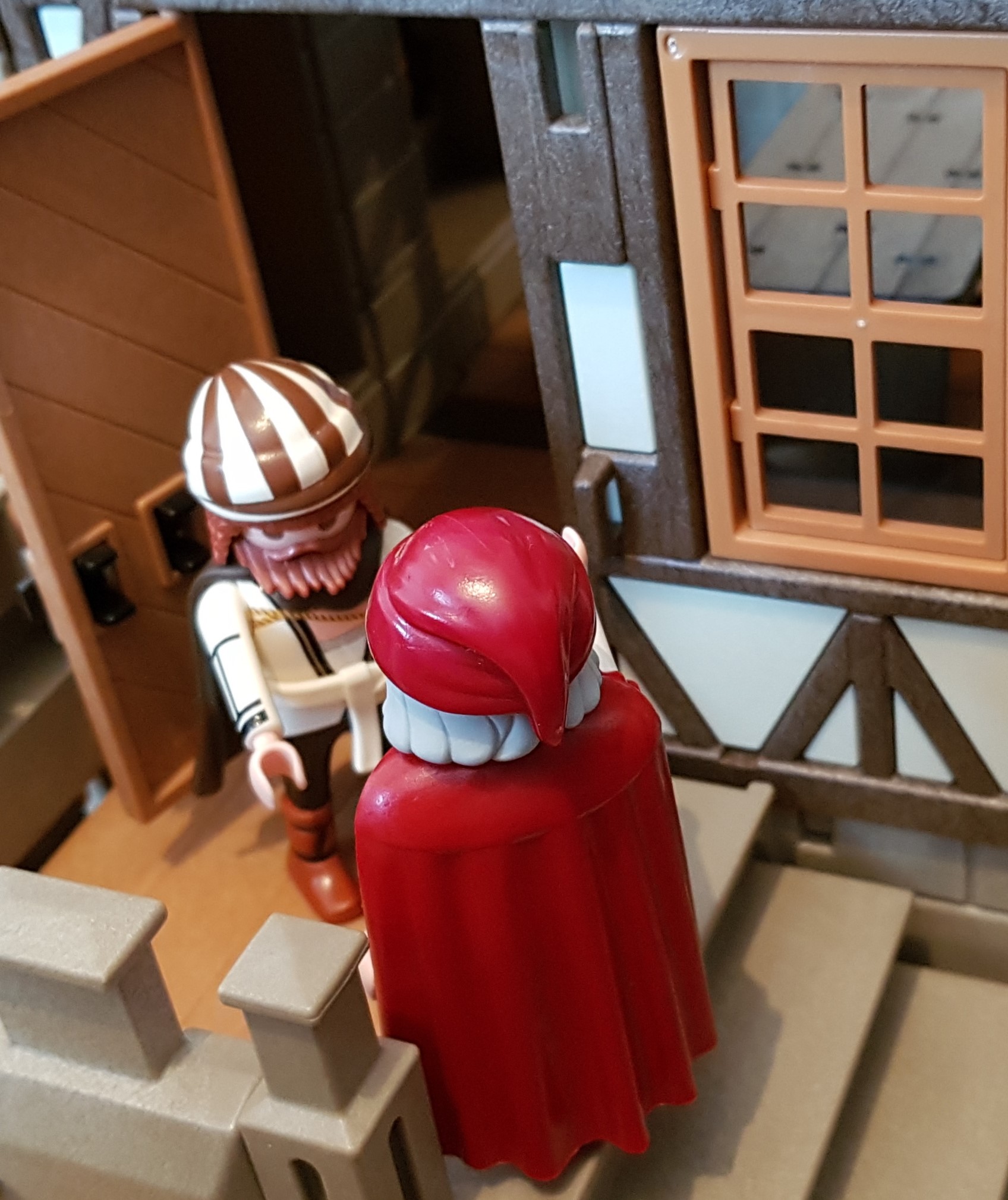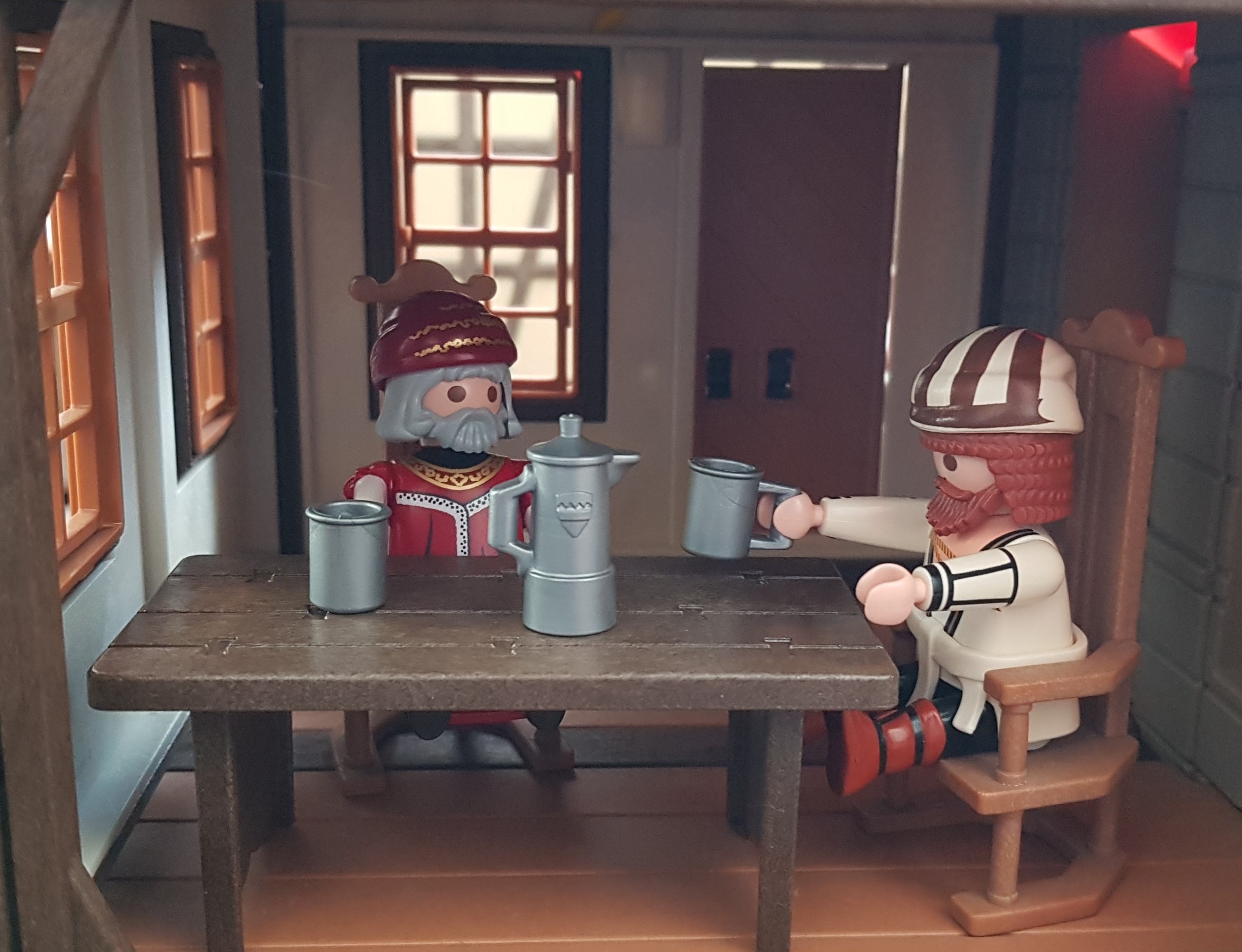 Grüß euch Gott Herr Dürer! Der Herr Stadtschreiber Peutinger! Was verschafft mir die Ehre? Ich wollt' euch nur besuchen und über die neuesten Entwicklungen sprechen. Ich bin dazu extra aus Augsburg angereist! -----
