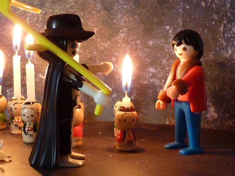 „Siehst du“, sprach der Tod, „das sind die Lebenslichter der Menschen. Die großen gehören Kindern, die halbgroßen Eheleuten in den besten Jahren, die kleinen gehören Greisen. Doch auch Kinder und junge Leute haben oft nur ein kleines Lichtchen."