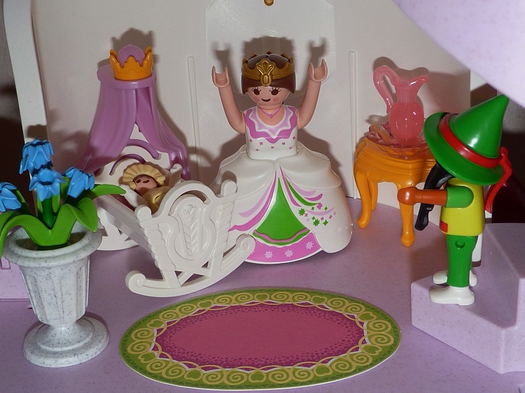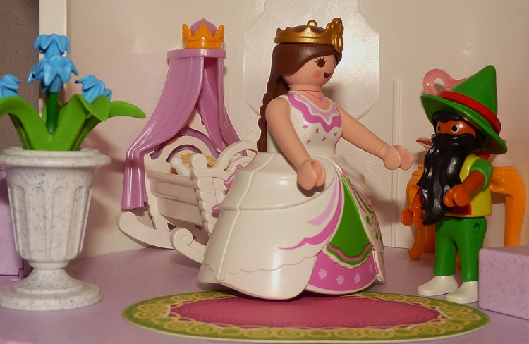 Über ein Jahr brachte sie ein schönes Kind zur Welt und dachte gar nicht mehr an das Männchen: da trat es plötzlich in ihre Kammer und sprach: „Nun gib mir was du versprochen hast.“ Die Königin erschrak und bot dem Männchen alle Reichtümer des Königreichs an, wenn es ihr das Kind lassen wollte.