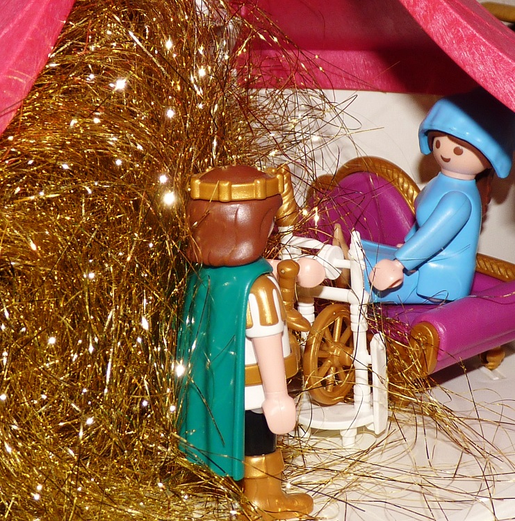 „Wer weiß wie das noch geht“, dachte die Müllerstochter und wusste sich auch in der Not nicht anders zu helfen; sie versprach also dem Männchen was es verlangte, und das Männchen spann dafür noch einmal das Stroh zu Gold.