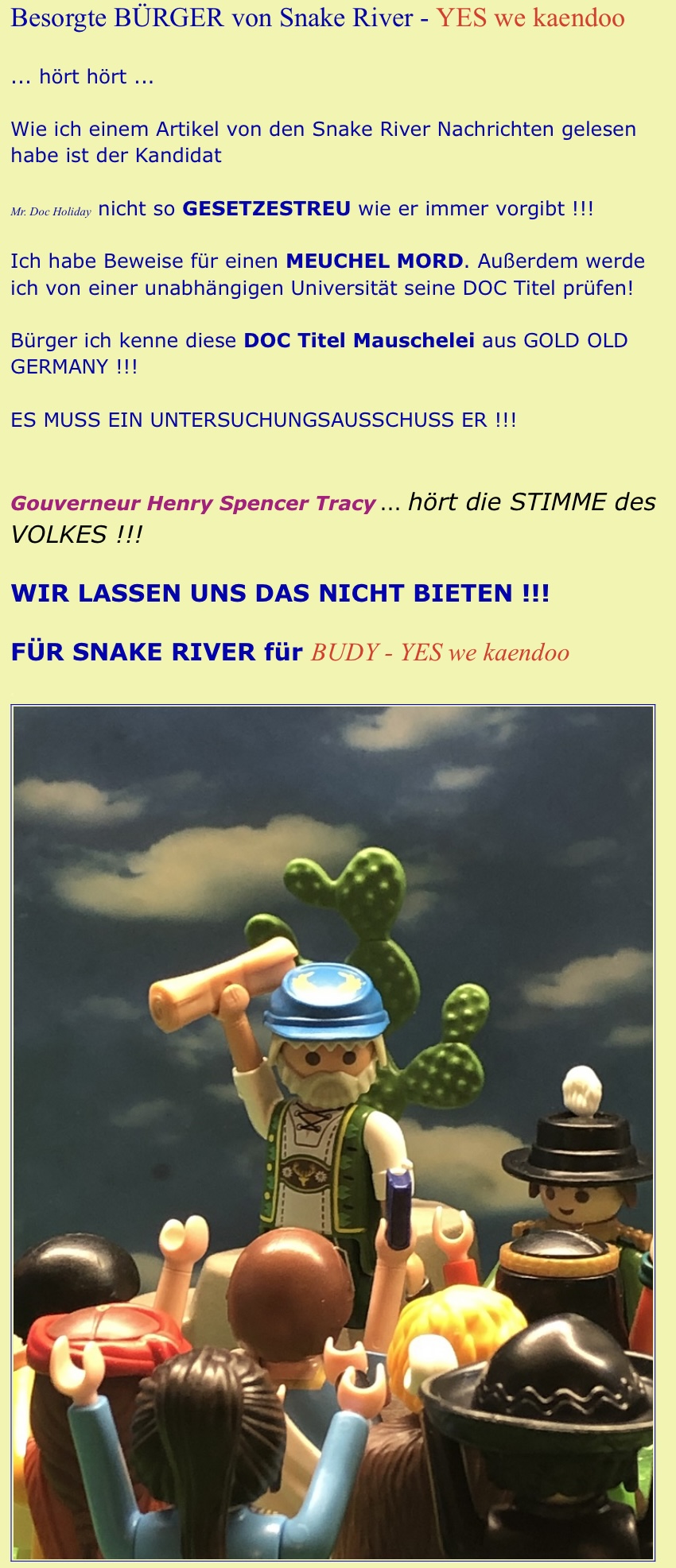 RE: die verrückten Spielewelten/ USA- Union/ Georgia - JTD - 25.02.2023 (25.02.2023, 19:04)Meerkoenig schrieb: Was treibt Mrs Vanderbilt eigentlich zur Zeit? In letzter Zeit war die irgendwie unsichtbar... Gehört Mrs Vanderbilt auch zu den Zivilisten, die Henry Spencer Tracy verschwinden lassen hat? Hochachtungsvoll, ein besorgter Bürger