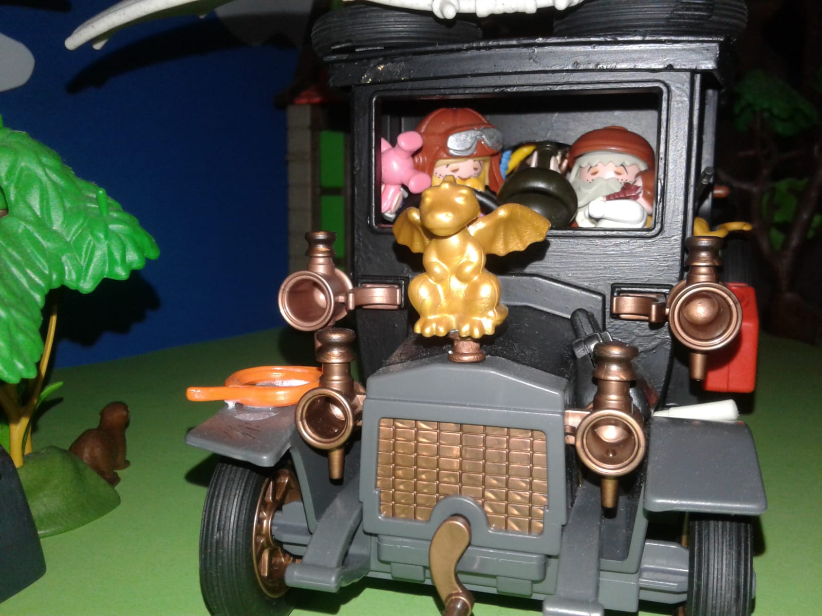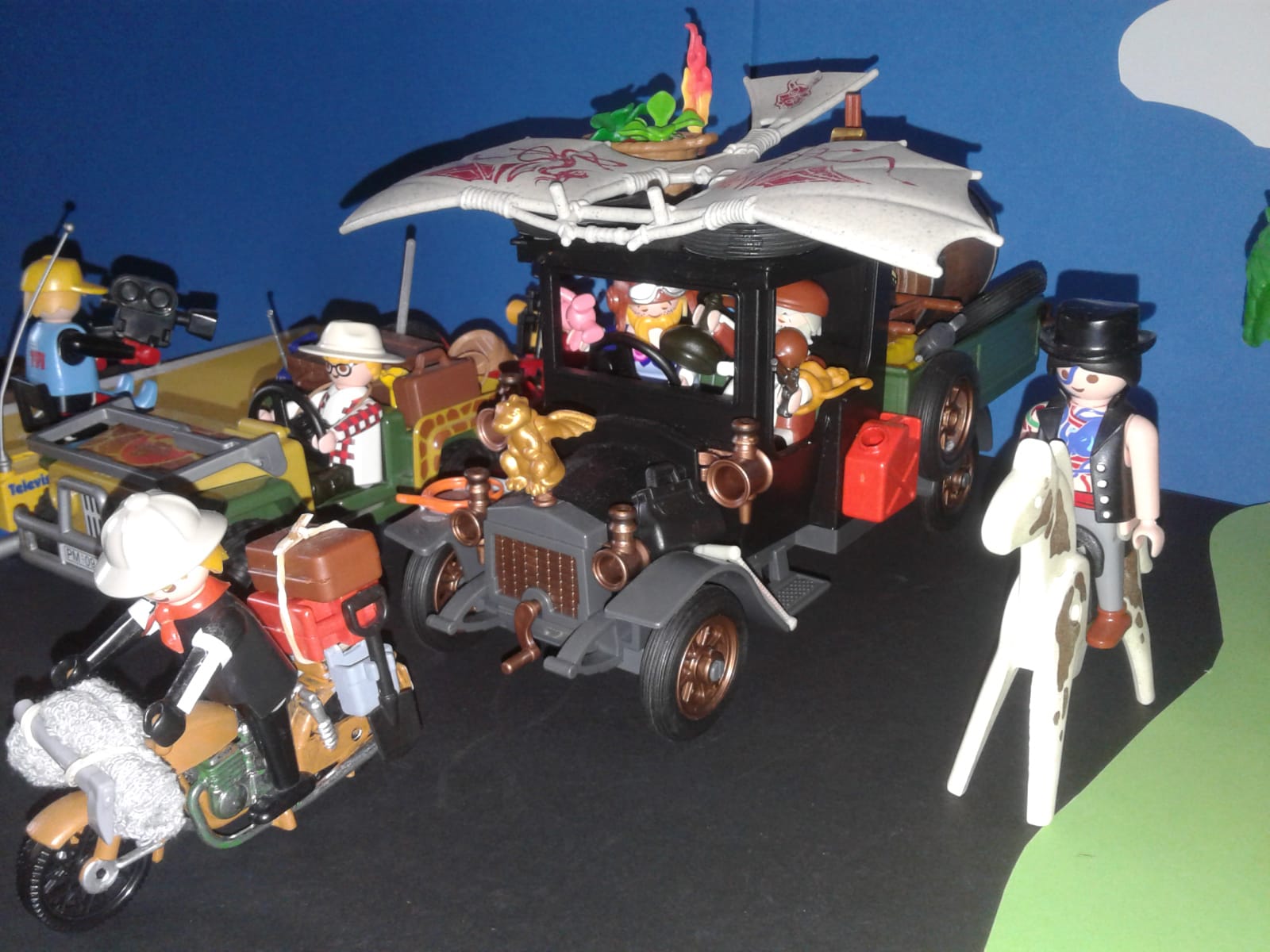 Hicks.... schau lieber nach vorne, der lahme Motorradfahrer kommt gefährlich nahe, sonst ist der gleich unsere neue Kühlerfigur......