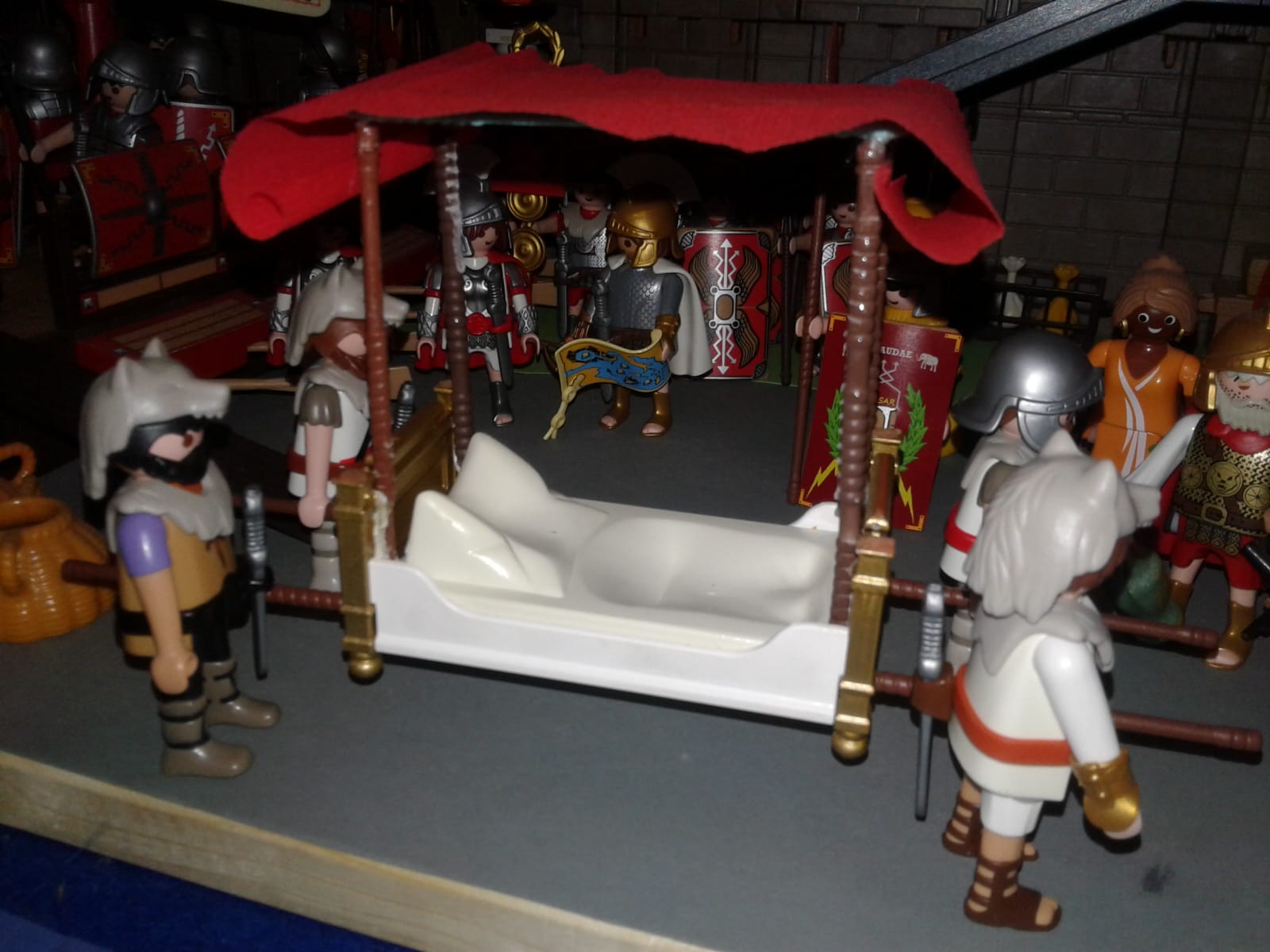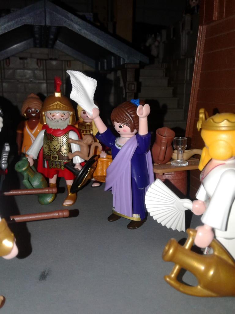Ah, das Weib vom Ralfus ist auch da.... Hicks.... für sie habe ich ein kleines Präsent vom Imperator Trajan, der mochte sie wohl, als er sie auf Corsika..... PUPS.... kennenlernte, können sie gleich haben, die kleine Warensendung..... RÜLPS....