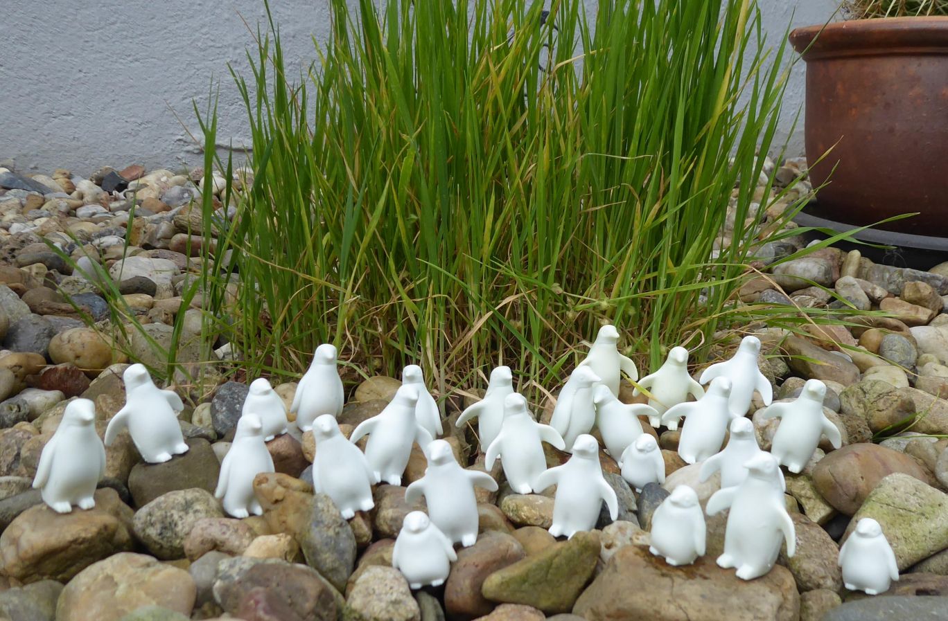 Wir gehen davon aus, das dieses seltene und fast ausgestorbene Trüppchen, dort verzweifelt auf der Suche nach Deckung ist, weil diese Art, Ihrem angebohrenen Fluchtreflex, auf einer kleinen Insel ja nicht nach gehen kann..... Pfeif