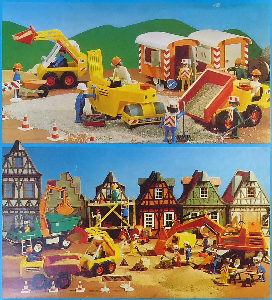 Ich habe mir ja leider nicht gemerkt, von welchen Baustellen-Sets ich diese Bilder abfotografiert habe. Aber sie sind vom Ende der 70er Jahre.