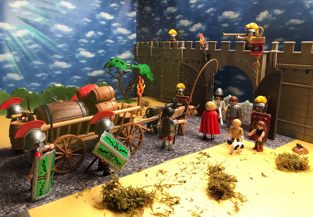 Primus Pilus Tiberius Verräterus kontrolliert den Passierschein ganz akribisch.