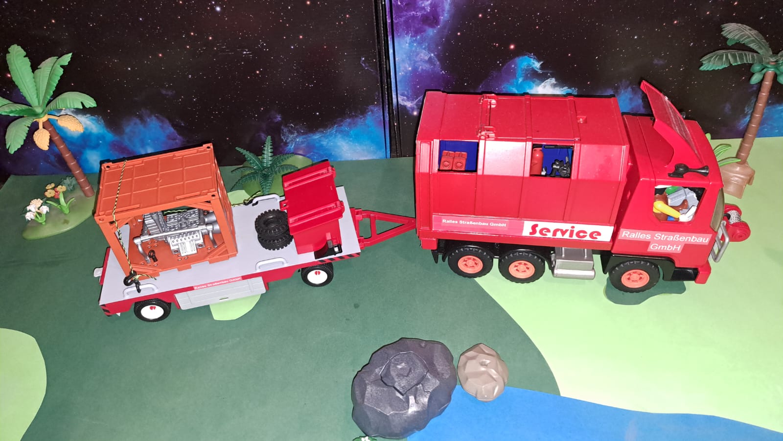 Dieser LKW ist von Chris/ THWler, den hat er mir mal vor einiger Zeit gebaut, habe ihn nun umgewidmet, als Werkstattwagen, zur Wartung meiner Fahrzeugflotte und mit dem Hänger, den ich gebaut habe, können Ersatzteile oder auch kleine Fahrzeuge transportiert werden......