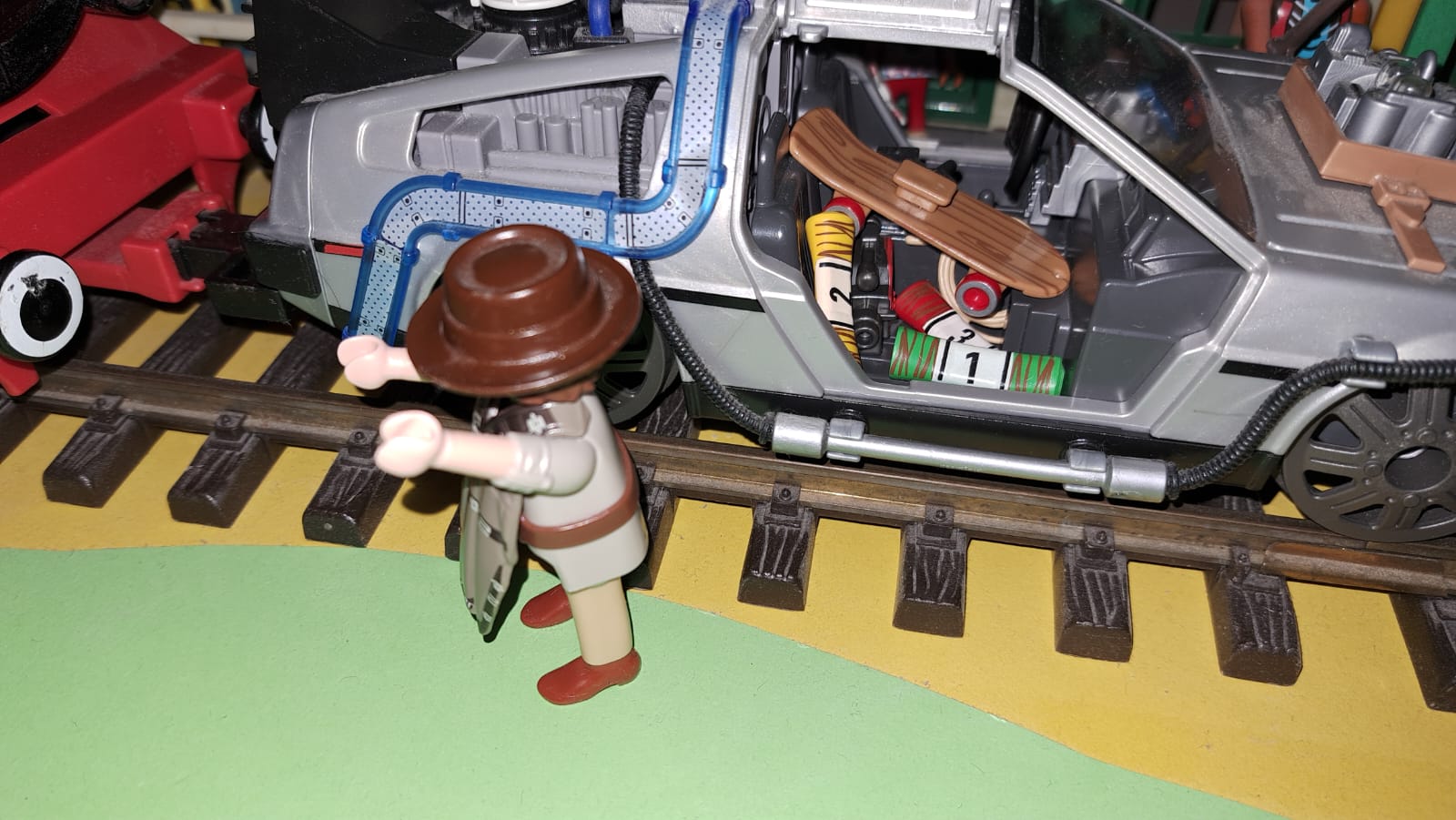 Ah, hallo Marty, da biste ja, schön das du pünktlich bist, dann können wir ja loslegen...... Hallo Miss Clayton, schön sie wieder zu sehen...... Also Marty, wie besprochen, ich beschleunige die Lok, mit meinen Superzündis, auf 88 Meilen und dann geht es für dich, "Zurück in die Zukunft!" .... Wow, das sieht aber alles cool aus und es glänzt so toll, wir leben hier in Florida im besten Land der Welt, nirgend sonst funkelt es so schön wie hier..... ![]() OK Junge, wir sind bereit, steig in den DeLorean und dann geben wir Gas, das wird Spektakulär ....... ![]() So, alles schön vorheizen und die ersten Superzündis reinwerfen, mehr ist besser als weniger...... Oh nein....... das wird schief gehen..... ![]() Doc...... Doc...... Nicht..... halt..... stoppen sie das anheizen...... !!! Sie haben nicht die Superzündis, die liegen noch in der Zeitmarschine........ DOC.......!!! KAAAAAAWWWWWUUUUUMMMMMMM ....... !!! ohoh....... ob es da noch weiter geht......