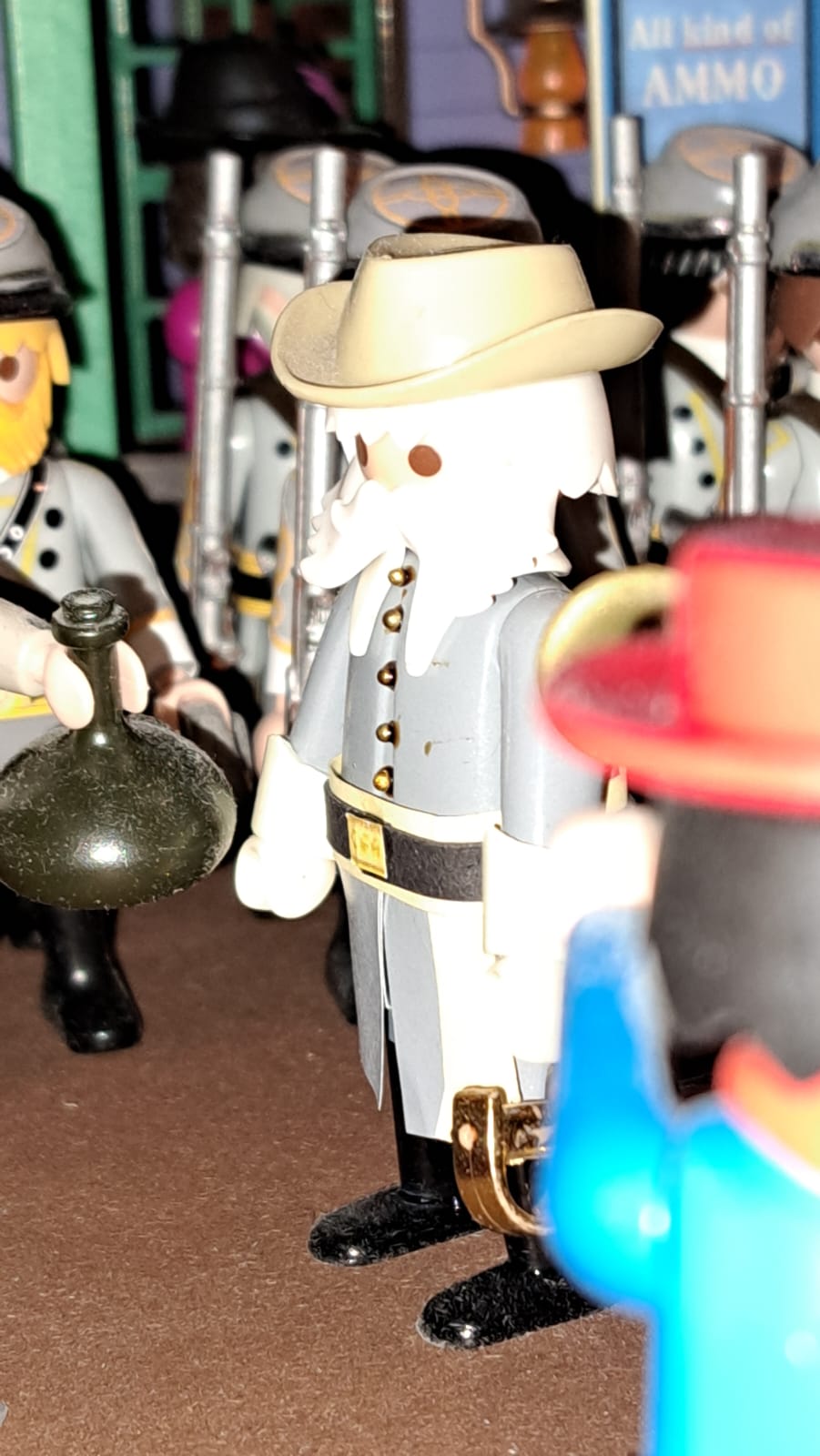 Meine Herren, ich muss gleich zu diesem Minister und möchtegern Präsidenten Kochfeller.... manchmal möchte ich meine Uniform an den Nagel hängen, diese ständigen Intriegen, das ist kein anständiges Soldatenhandwerk..... wir sollten den Süden sichern, nicht Krieg anzetteln, die im Norden leben zwar anders als wir, sollen sie, aber wir haben als Brüder gemeinsam gegen die Engländer gekämpft und nun sollte jede Seite, Ihre Art des Friedens genießen und nicht, das wir aufeinander schießen.....