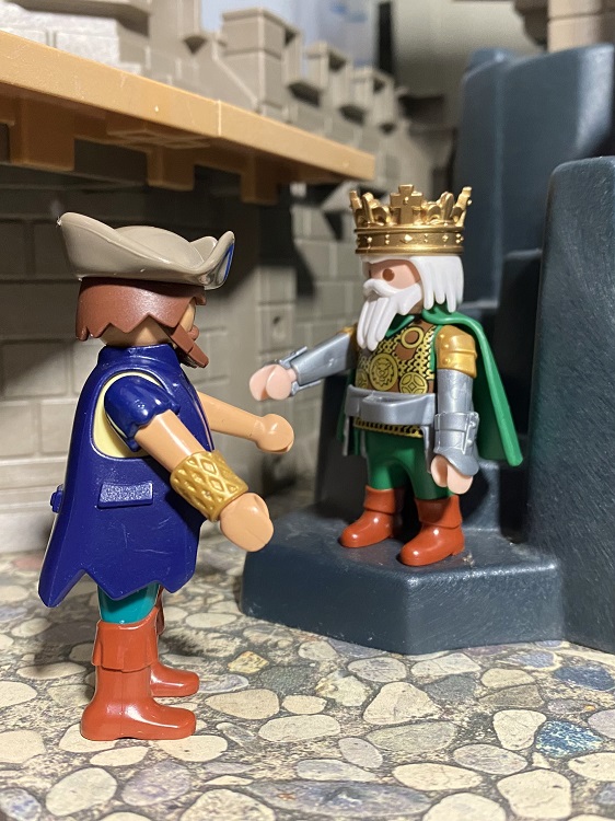 Ist ja toll, der selbst geknüpfte Teppich mit dem Wappen von Playmobil! Hast Du den gemacht? respekt Zehn