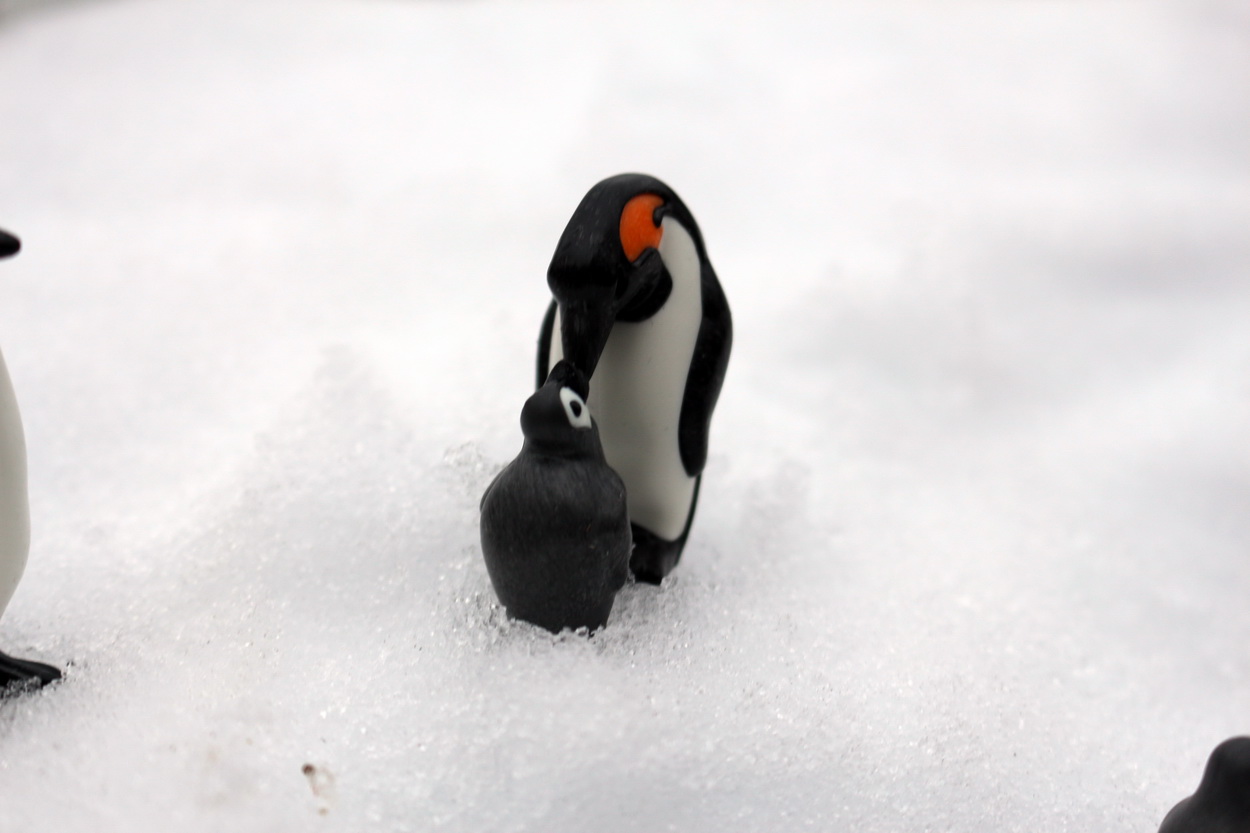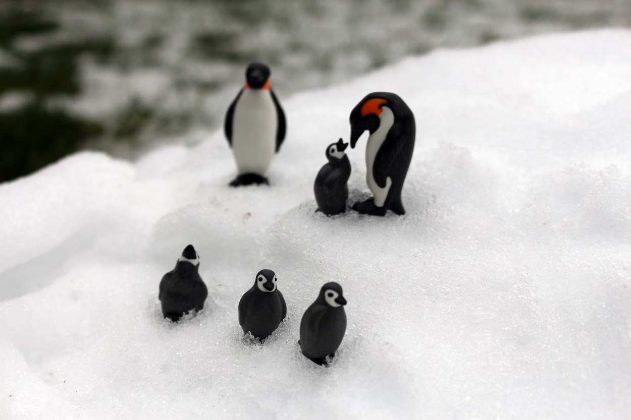Familie Pinguin ist im Schnee unterwegs, die Kleine sind voll in ihrem Element...