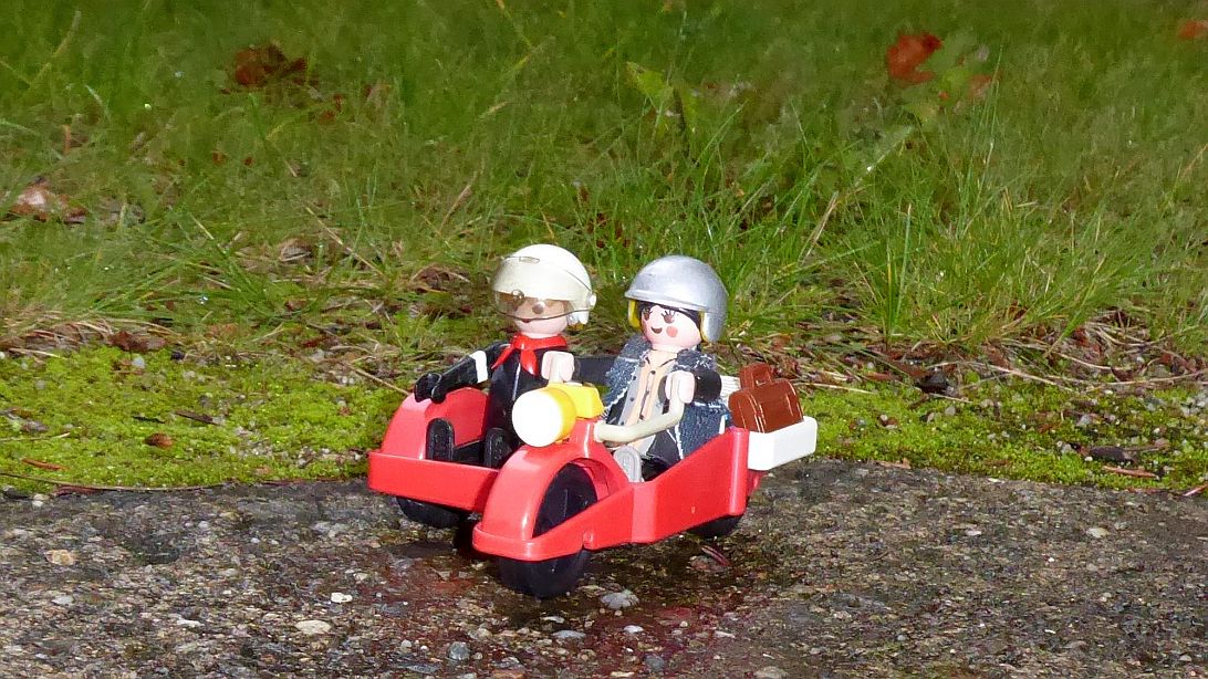 Aber da die Bilder Floranja zeigen, passen sie schon in ihr Bilderallerlei. Das lustige Dreirad ist von Carrera Play-OK - Carrera hatte auch mal Spielfiguren, die halbwegs Playmobil-kompatibel waren. Unbefugte sind nicht befugt, Unfug zu treiben!